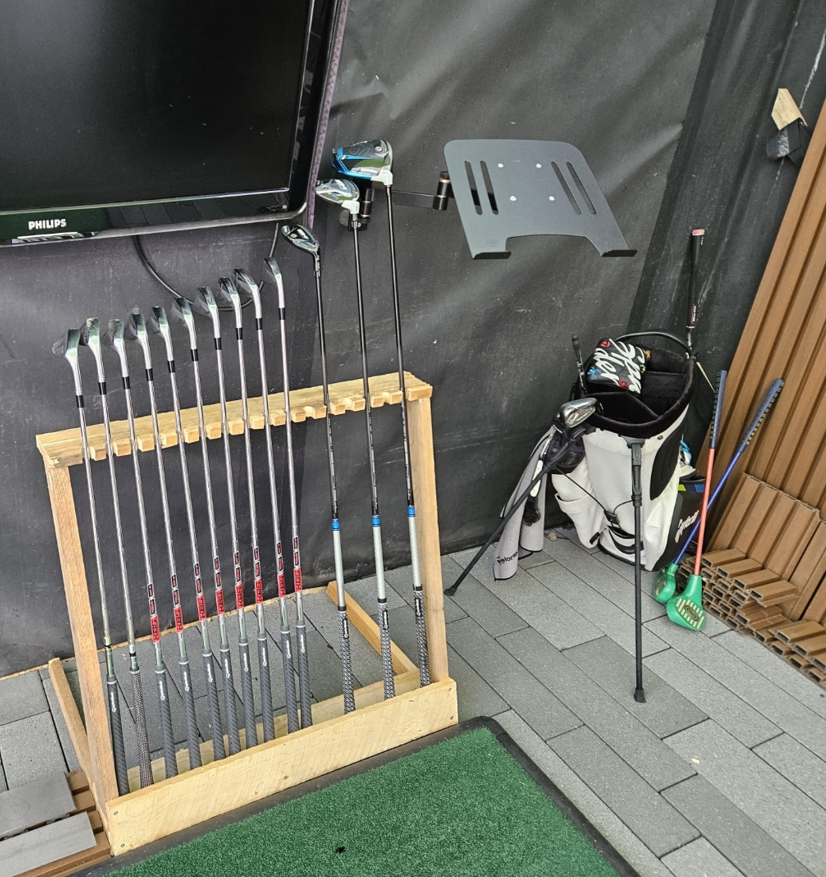 I’m Thomas – passionate golfer, mechanical engineer, and a lifelong wood enthusiast. When life got busier with work and a growing family, I built a golf simulator at home to make the most of my limited time on the course. Due to space and ceiling constraints, I had to install it outdoors – and that’s where the real challenge began: organizing my clubs.